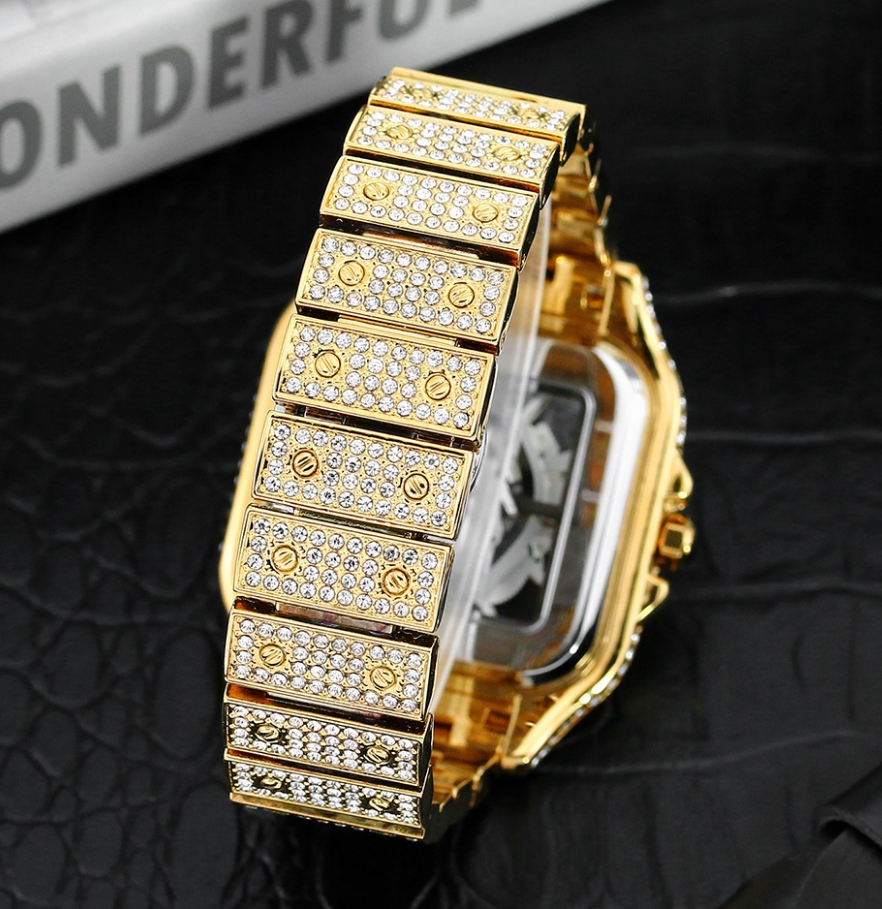 Exiba estilo e personalidade com este relógio unissex quadrado com design moderno e cheio de brilho.