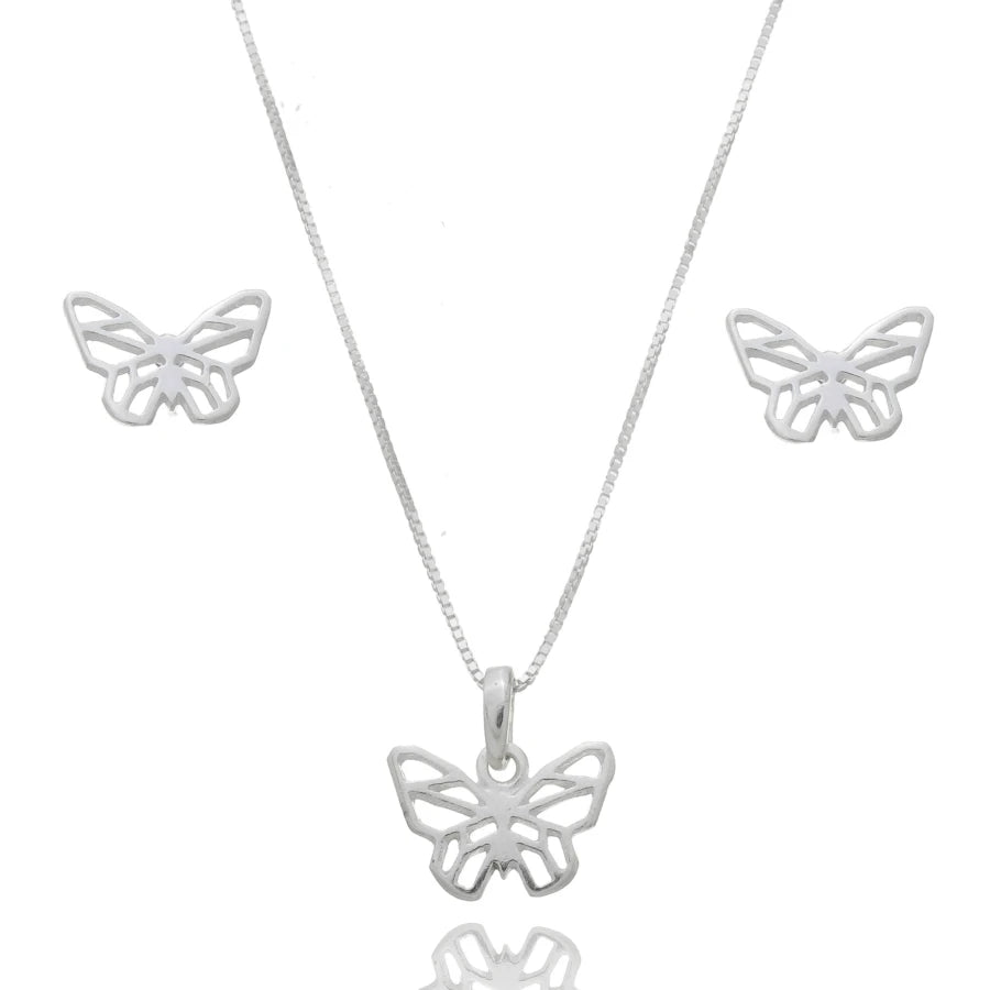 💖 Conjunto de Joias Borboleta – Colar com Pingente + Brincos Feminino em Prata 925