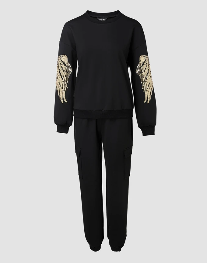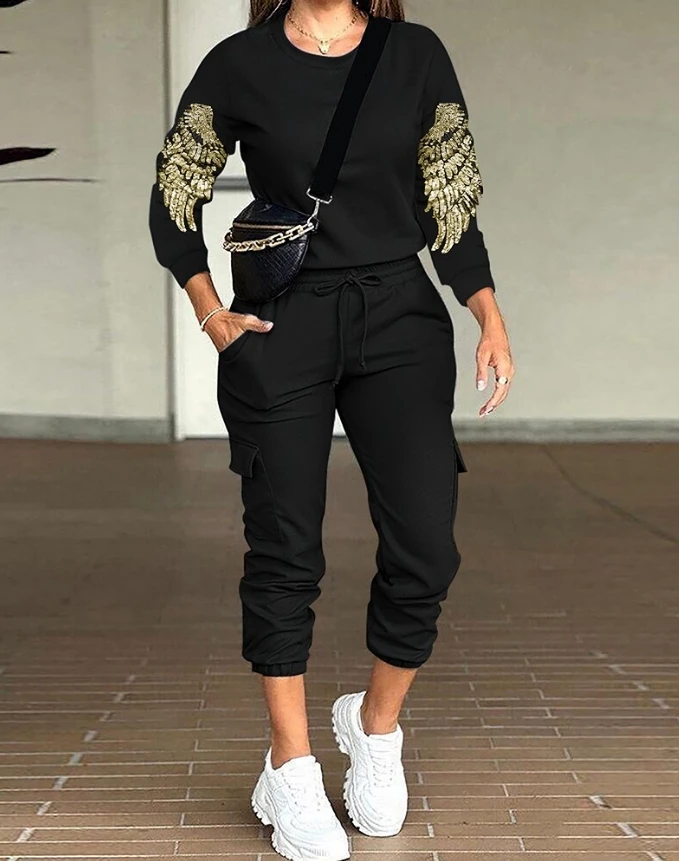 ✨ Conjunto Feminino com Blusa de Paetês e Calça Jogger — Estilo, Conforto e Modernidade