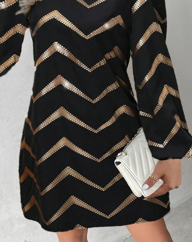 👗 Vestido Feminino Verão 2025 XIKUO – Estilo Casual com Estampa Chevron e Decote V
