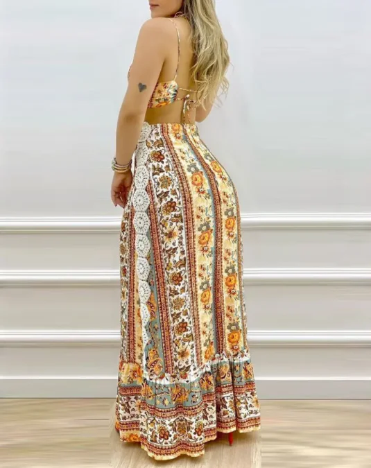 Encante-se com o charme e a elegância do vestido longo LINLING, uma peça leve e moderna que combina estampa delicada, renda contrastante e design costas abertas. Perfeito para dias quentes de verão, o modelo realça a silhueta com seu caimento slim e corte A-line, oferecendo conforto e sofisticação em cada detalhe. ☀️👗