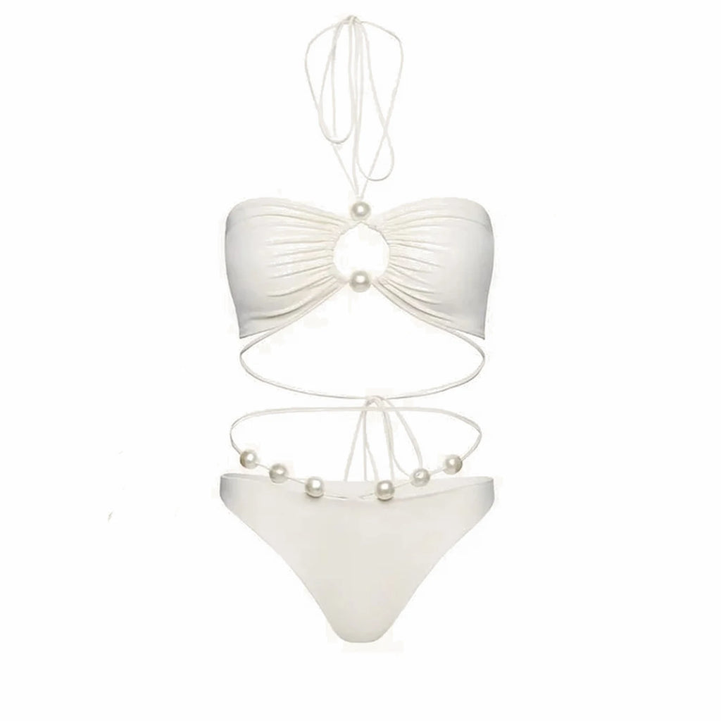 🌸 Design 2 em 1: top com amarração no pescoço e parte de baixo com saia embutida, que valoriza o corpo e oferece mais cobertura.